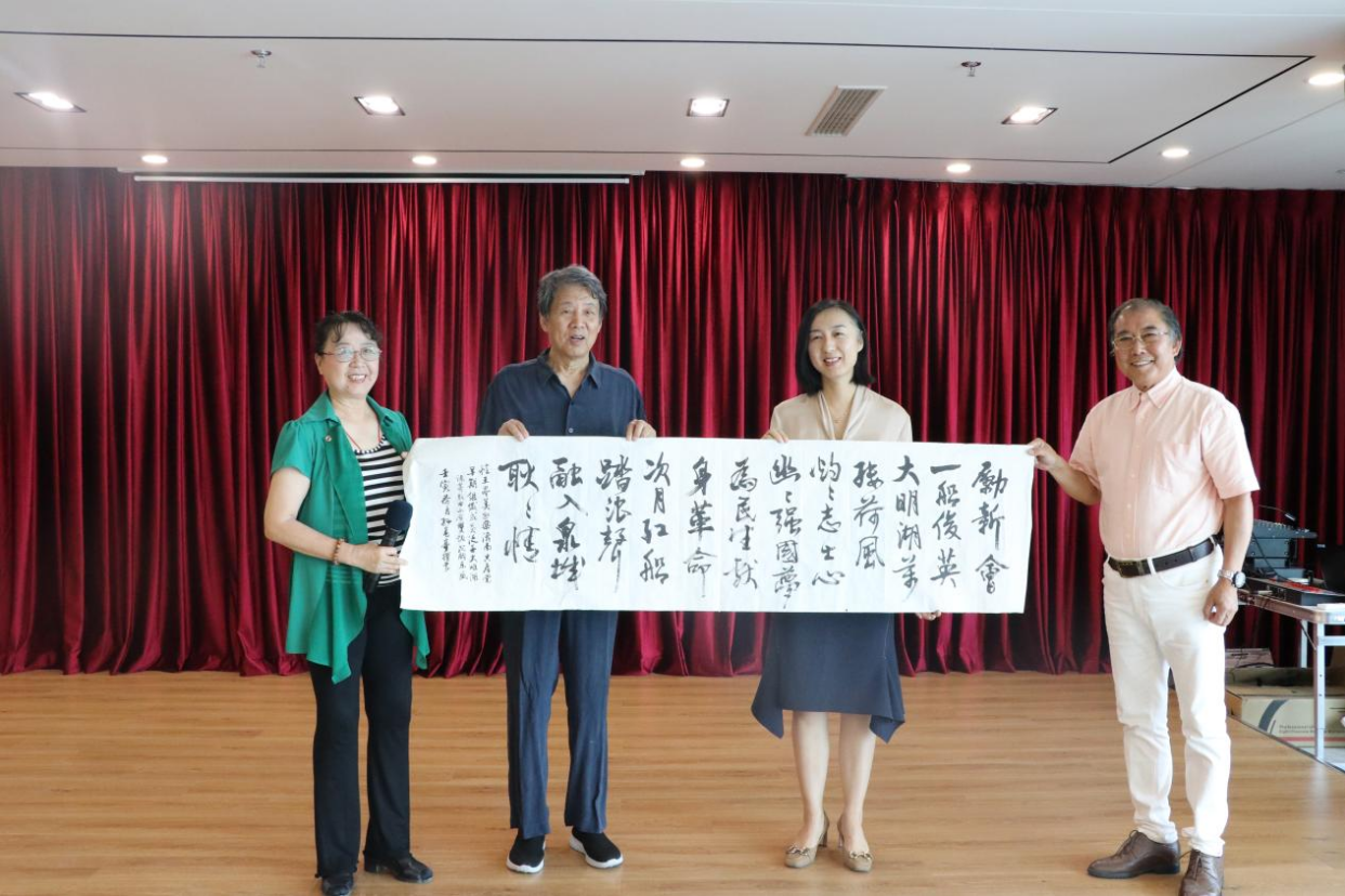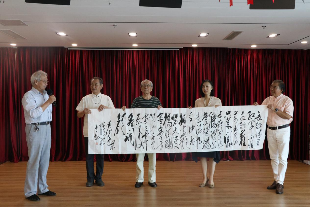 文艺汇演开始前,任正会长发表讲话,并与韩甜总编为槐荫诗词学会、济南回族诗社、和韵诗社、青泉诗社授牌,国家一级文学编辑孙春亭、书法家张希木为老干部之家杂志社赠送了书法作品。