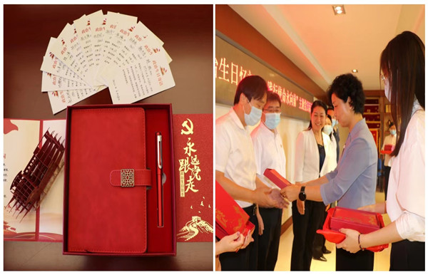 艾丽同志向每一名过“政治生日”的党员赠送了生日礼物。生日礼物代表了红色基因代代相传的美好寓意和党组织对每一名党员的殷殷嘱托。