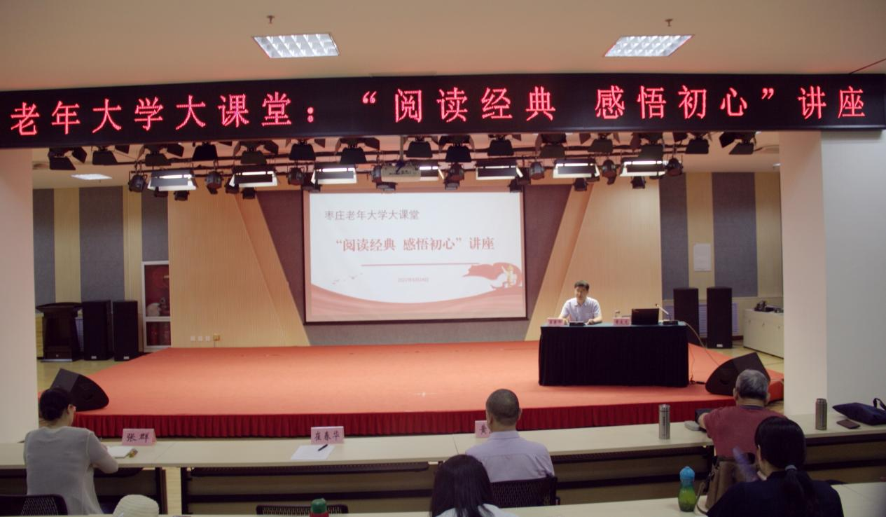 为贯彻落实《关于加强新时代离退休干部党的建设工作的意见》和山东省第十二次党代会精神,加强对离退休干部思想政治引领,庆祝“七一”建党节,6月24日,枣庄老年大学大课堂“阅读经典 感悟初心”讲座举行。市老干部活动中心主任崔春华主持,枣庄老年大学学员党员代表、班委代表参加讲座。