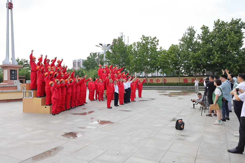 歌声在华八井上空回荡。当年,老石油们唱着《我为祖国献石油》在胜利油田奋斗、奉献。如今,他们在东营这座海风劲吹、四季浪漫的油城幸福生活、安享晚年。今天,他们又回到了为国献油出发的地方——华八井,再唱《我为祖国献石油》,用歌声感党恩、铭初心,用歌声唱响新时代……