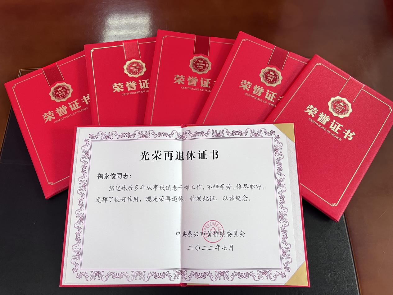 在本轮离退休干部换届选举中,黄桥镇有2个支部书记、4个支部(总支)副书记因年龄、身体等原因不再任职,其中,担任支部书记时间最长达23年,最短的也有7年。该镇在总支换届选举大会结束后,举行了离任老干部“荣誉再退休”仪式,颁发“荣誉再退休”证书,集体合影留念,原六支部书记唐庆华、新任五支部书记钱汉文同志分别发表了离任感言和表态发言。唐庆华深情地说,“我担任支部书记12年了,今天的仪式既是组织上对我长期担任书记的关怀肯定,也是对今后工作的激励鞭策,我将继续力所能及地发挥余热。”整个仪式简朴温馨,满仪式满满,现场氛围感染了老同志们。老同志们纷纷表示,“荣誉再退休”制度,体现了对离任老同志的关怀激励,让我们觉得组织上任何时候都没有忘记我们!