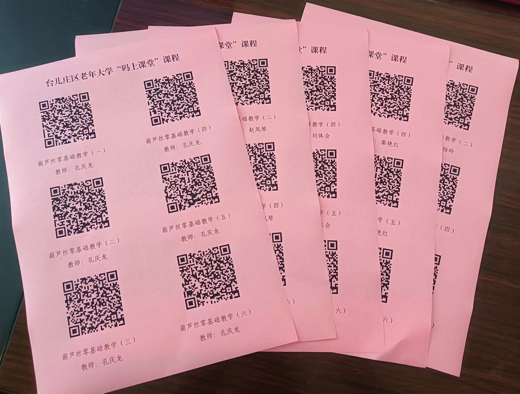 考虑到老年人面临着交通不便、对智能手机应用掌握不深等现实困难,为让学校丰富优质的教学资源惠及全区广大热爱学习的老年人,台儿庄区老年大学在线上课堂基础上,创新推出“码上课堂”,通过一张二维码链接一堂精品课,让“码”上学理论、学知识成为全区老年人“老有所学”的又一个阵地,掀起了一股手机微信扫码学习的热潮。