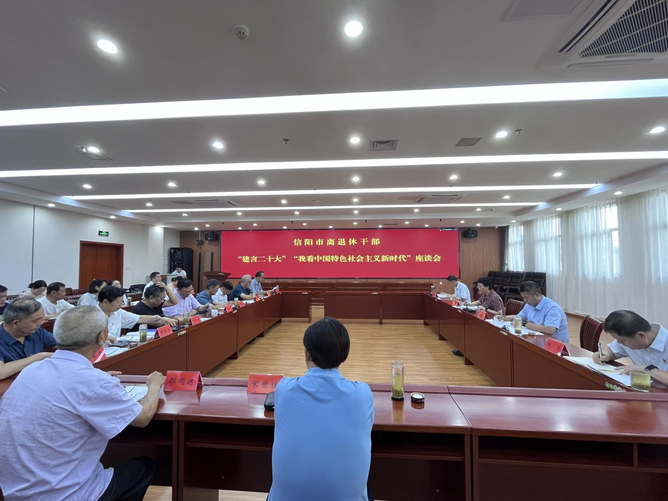 为引导广大离退休干部始终与党同向同行、同频共振,充分表达礼赞新时代、喜迎二十大的真挚情怀,按照省委老干部局统一部署,近日,河南信阳市委老干部局召开全市离退休干部“建言二十大”“我看中国特色社会主义新时代”座谈会。市委组织部副部长、市委老干部局局长魏晓莉参加会议并讲话,会议由市委老干部局副局长胡发良主持。局领导班子成员参加会议,局各科室和直属单位负责人列席旁听。