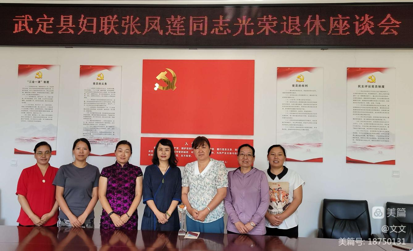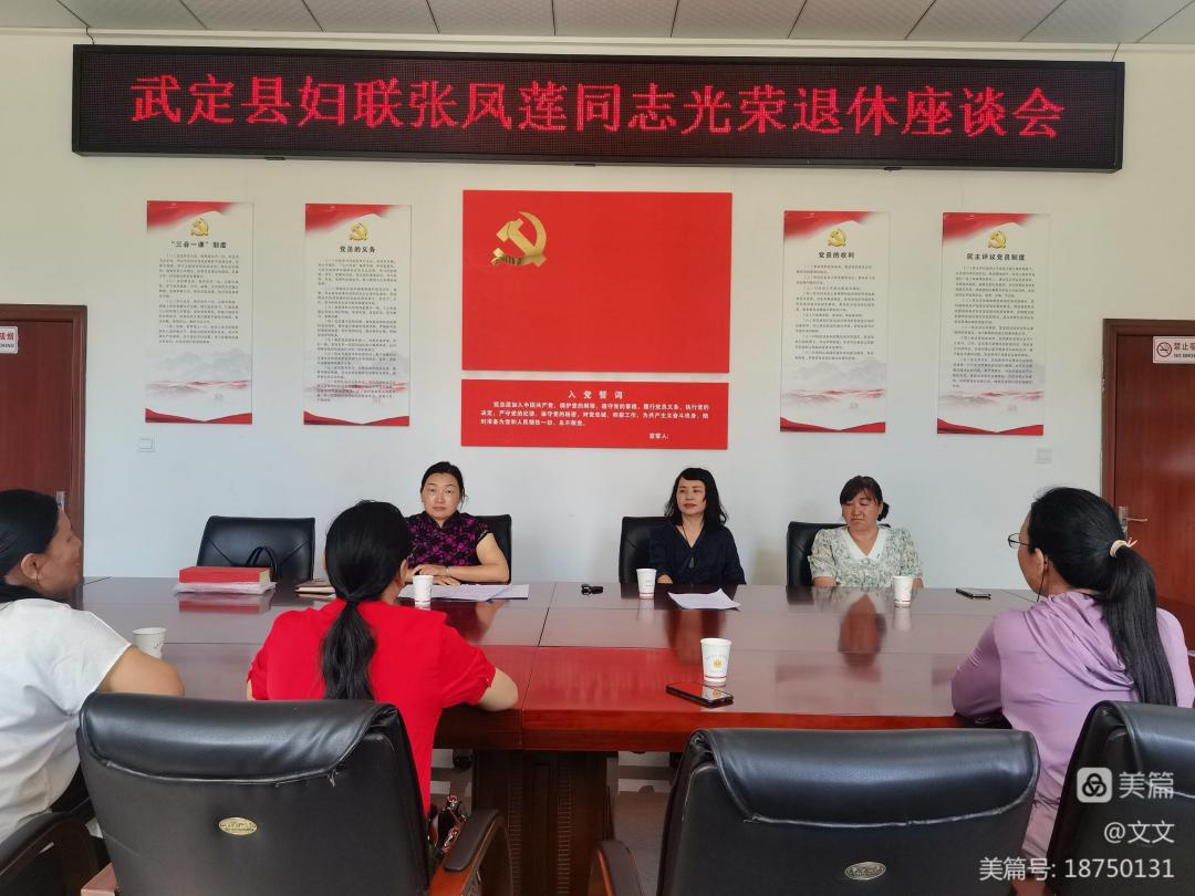 为认真贯彻落实习近平总书记关于“对老干部要政治上尊重、思想上关心、生活上照顾、精神上关怀”的重要指示精神,健全完善干部管理体制机制,充分体现管理服务伴随干部一生,不断增强组织荣誉感、归属感、使命感。云南省武定县妇联认真落实楚雄州干部荣誉退休制度,根据县委组织部批准核发退休证,于7月26日为本单位职工张凤莲举行荣退仪式。仪式由县妇联党组书记、常务副主席覃文主持,县人大常委会副主任、妇联主席郑立华出席活动并为张凤莲颁发荣退证书、赠发荣誉牌匾、拍摄纪念照片。