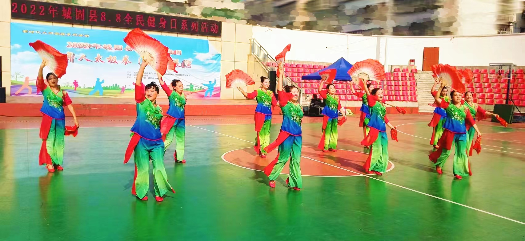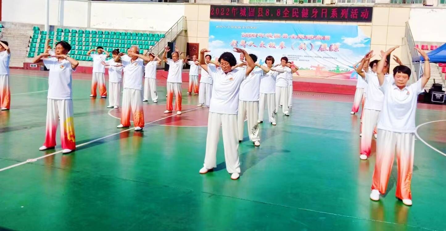 全民健身日,精彩动起来。为进一步落实全民健身国家战略,认真实施《关于构建更高水平的全民健身公共服务体系的意见》,倡导文明健康生活方式。8月7日,在全国第十四个全民健身日到来之际,由陕西汉中市城固县体育运动中心、县老年人体育协会、县老年学学会主办;县武术协会承办;县退干所、县文化馆协办的2022年全民健身日老年人太极拳(剑)展演比赛在城固县体育运动中心灯光球场举行,来自城区的100多名运动员参加了比赛。