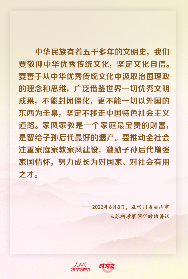 “一滴水可以见太阳,一个三苏祠可以看出我们中华文化的博大精深。我们说要坚定文化自信,中国有‘三苏’,这就是一个重要例证。”习近平总书记对此深有感触。