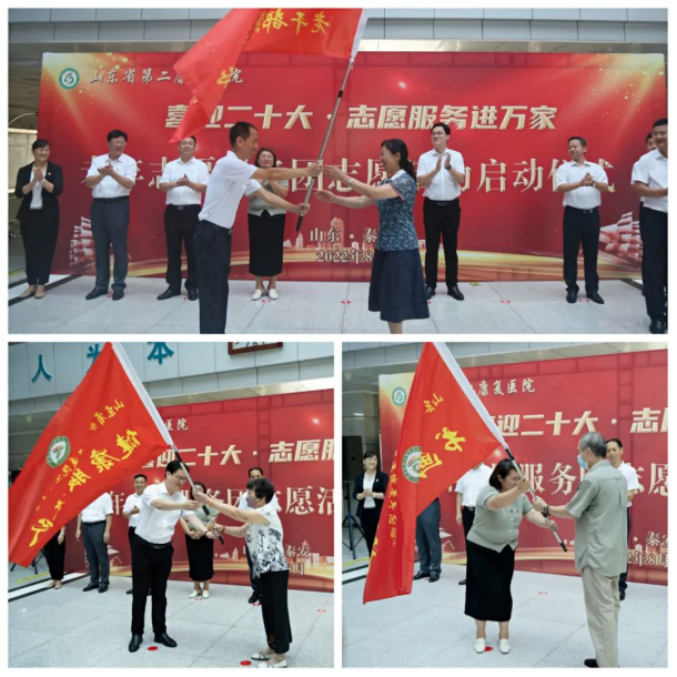 为进一步弘扬“奉献、友爱、互助、进步”的志愿服务精神,服务百姓健康,强化老干部工作品牌建设,8月12日,山东省第二康复医院举行老年志愿服务团志愿活动启动授旗仪式。省卫生健康委离退休干部处处长单既友,省第二康复医院党委书记王伟,泰前街道党工委委员、宣传委员范文荟,院党委副书记、院长刘钒,副院长李信生、王治国,党委副书记刘雨出席仪式。