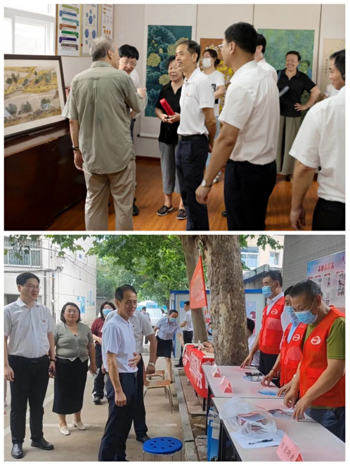 领导参观书画展和志愿服务现场