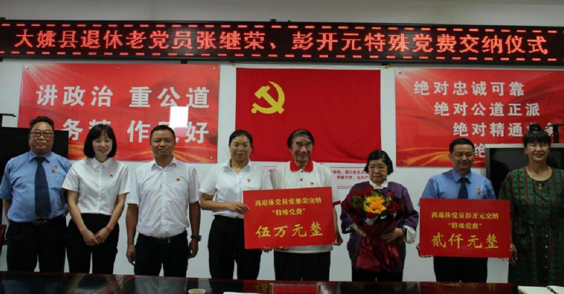 大姚县退休党员干部张继荣、彭开元大额党费交纳仪式(李明芬摄)