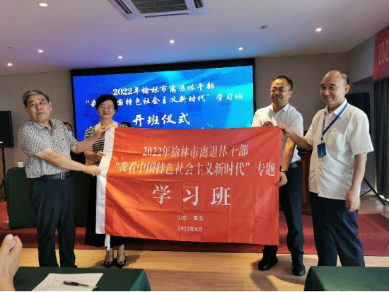 8月14日,举行了开班仪式。会上,榆林市委组织部副部长、老干部局局长刘斌作了开班动员讲话;榆林市委老干部局副局长、市直离退休干部党委书记张玉红宣读了本次活动学习纪律;刘斌、张玉红为此次学习班授班旗。