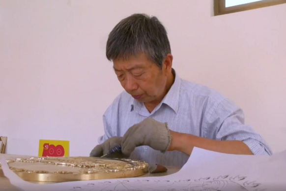 今年68岁的付连任自幼喜爱美术,业余时间笔耕不辍,曾在青岛大学美术学院和清华大学美术学院深造。自退休以来,正式开始铜板雕刻创作,用5年的时间完成了5件作品。其中,第一件作品《中华一条龙》被民族文化宫博物馆收藏;第二、三、四件《中国巨轮启航新时代》,经严格评审,分别被南湖革命纪念馆、中共山东省党史陈列馆、高密市委组织部收藏,第五件《人类命运共同体》捐赠给周恩来纪念馆。
