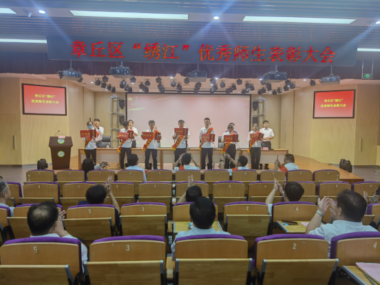 8月26日,济南章丘区召开表彰大会,对荣获“绣江”优秀师生奖的42名“绣江”优秀教师和30名“绣江”优秀毕业生进行了表彰奖励。