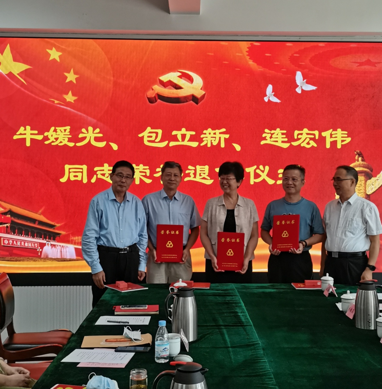 会上,中心领导向退休同志颁发了荣誉证书、工作纪实短片U盘、纪念影集。