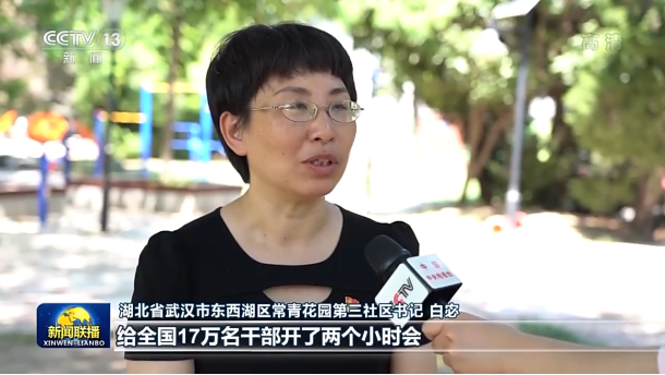 湖北省武汉市东西湖区常青花园第三社区书记 白宓:在疫情防控最关键的时候,习近平总书记通过电视电话会,给全国17万名干部开了两个小时会,将任务一竿子插到底。正是因为有习近平总书记作为风雨来袭时大家伙的主心骨,我们才能最大限度保护人民生命安全和身体健康。