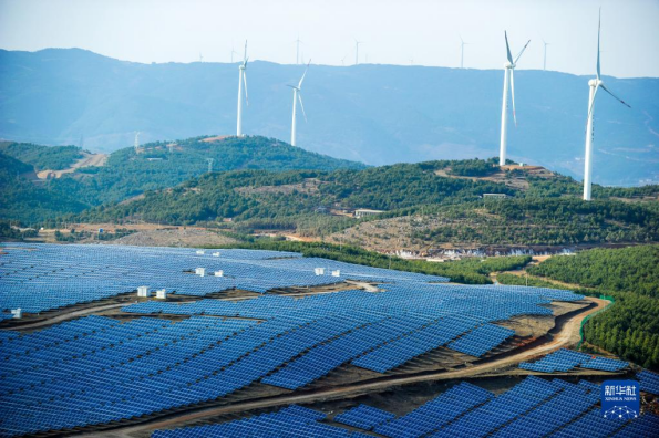 这是贵州省威宁县平箐光伏电站和大海子风电场(2018年3月13日摄)。 新华社记者 杨文斌 摄
