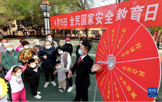 山东省枣庄市市中区人民法院工作人员在龙山路街道荣华里社区向居民讲解国家安全知识(2022年4月14日摄)。新华社发(孙中喆 摄)