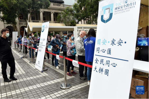 香港市民排队参加全民国家安全教育日活动(2021年4月15日摄)。新华社记者 卢炳辉 摄