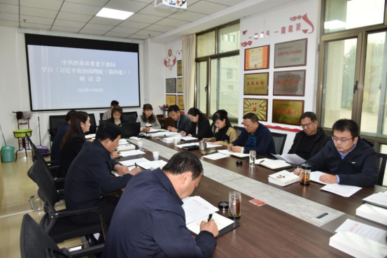 为深入学习贯彻《习近平谈治国理政》第四卷,持续增强用习近平新时代中国特色社会主义思想武装头脑、指导实践、推动工作的政治自觉、思想自觉和行动自觉,推进新形势下酒泉市老干部工作高质量发展,10月8日,甘肃酒泉市委老干部局召开《习近平谈治国理政》第四卷专题研讨交流会议,部分党员干部交流发言,并结合自身工作提出做好新时代老干部工作的具体举措。市委组织部副部长、老干部局局长王建宏主持会议并讲话。