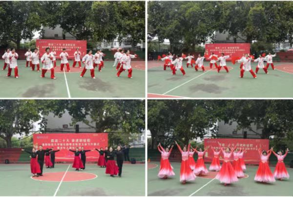 在文体节目展演环节,学校老年艺术团进行了精彩纷呈的表演。松沉致静、刚柔相济的太极拳,开合随意、情趣盎然的太极扇,婀娜多姿、翩翩动人的排舞,裙裾飞舞、仪态优美的交谊舞都引来群众的阵阵掌声和喝彩声。
