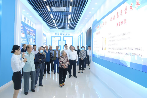 随后,老领导们走进中建南通绕城高速二工区制梁场,该工程路线全长约65.4公里,采用双向六车道高速公路标准,总投资约149亿元,是南通市构建“一环接苏南、二环连浦西、三环通浦东”高速公路网络的关键一环,对于优化市区交通主骨架布局、扩大过江通道辐射效应、推动“三个全方位”发展具有积极而深远的重要意义。在参观工程管理指挥和党风廉政建设教育“双中心”后,老同志们观看项目宣传片,详细了解南通绕城高速建设对市交通布局的重大意义,充分感受到中国建筑在施工管理过程中对信息化技术的创新应用,对项目智慧建造举措和“爱播一路•五心绕城”“融合促”党建品牌、“一路清风”廉洁品牌创建予以高度评价。