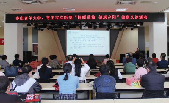 为宣传普及老年健康科学知识,推进“养教结合”办学模式,9月23日,在重阳节来临之际,枣庄老年大学举办“情暖桑榆 健康夕阳”义诊活动,邀请市立医院医护专家来校为老同志进行健康宣讲、急救培训和疾病诊疗。
