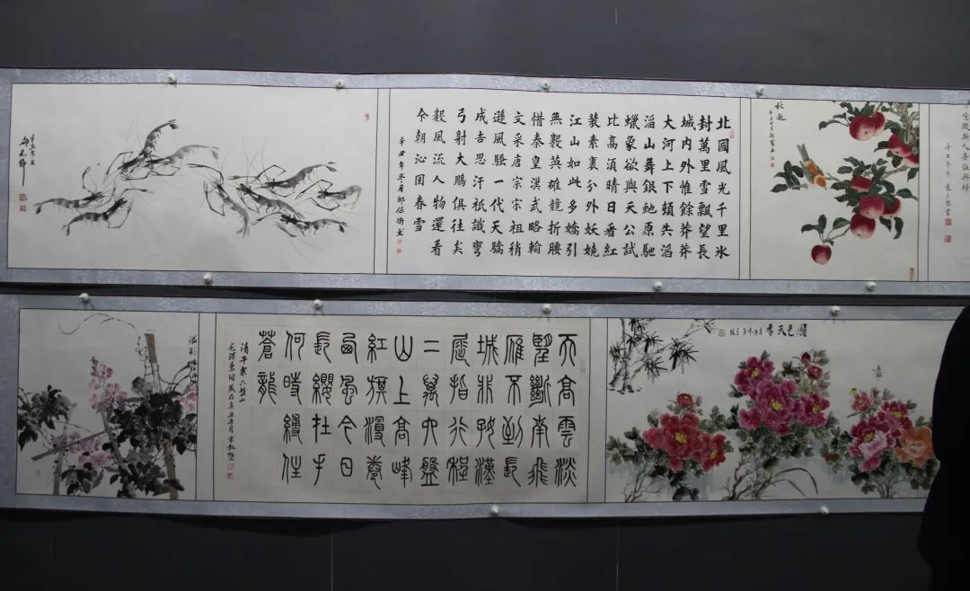 徐洪起简要介绍了此次书画展筹备情况,根据部署要求,市老干部书画研究会积极发动,精心筛选,由120位老艺术家、老干部凝聚心血和汗水,历时180天完成了全长160米的画卷,以书画艺术的形式唱响主旋律、讴歌新时代,为党的二十大献礼。
