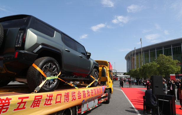 上海,10月24日,装载着第五届中国国际进口博览会首批展品的车辆缓缓驶入国家会展中心(上海),本届进博会正式进入搭建布展阶段。