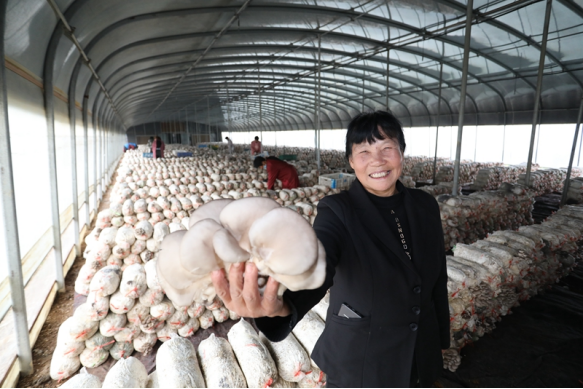 10月26日,在河南省鹤壁市山城区晶金食用菌专业合作社,创始人胡买岗向记者展示刚从菌棒中采摘下的新鲜平菇。“在人社部门创业担保贷款的支持下,我带着300多名农户建成了2个食用菌基地,年产珍稀食用菌能达到1500吨。”胡买岗说。