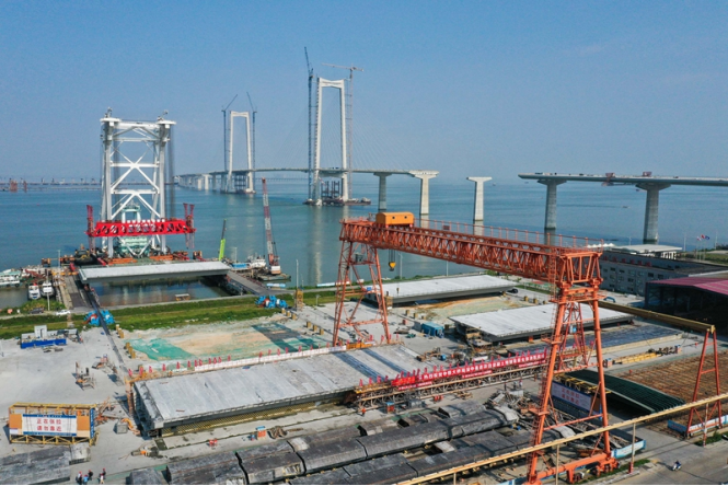 10月8日,集“桥、岛、隧、水下互通”于一体、连接深圳市和中山市的超大型跨海集群工程——深中通道混凝土箱梁全部预制完成。