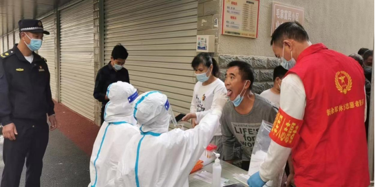 “大白员”。从凌晨4点半开始,化身“大白”的军休志愿者穿上防护装备、整理好核算检查工具、个人扫码系统,骑上电动车,赶往三个小区开展居民核算检查工作。从早上6点到中午11点,为上千名居民逐一做核算检测,确保不漏一户,不漏一人,应有尽有的做好核算检查工作,用敢于斗争的精神坚守一线。