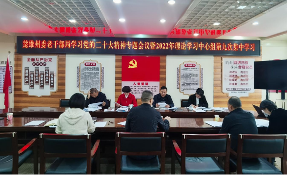 10月30日至31日,云南楚雄州委老干部局组织局领导班子理论学习中心组专题学习研讨党的二十大精神会议,通过学习原文、诵读党章、专题发言、心得分享等方式持续在学深悟透、贯彻落实党的二十大精神上下功夫。