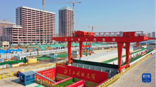 济南轨道交通6号线全线首台盾构机“启鲁一号”在于家庄站顺利始发,标志着济南轨道交通6号线工程西部标段正式进入盾构施工新阶段(2022年11月5日摄)。新华社记者 郭绪雷 摄
