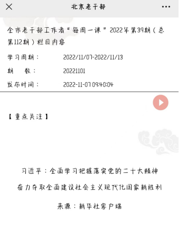 注重学用结合,突出一个“专”字。在全区专兼职老干部工作人员中开展业务专项答题活动,依托北京离退休干部服务管理平台,通过网络答题形式,对习近平总书记关于老干部工作重要论述、全国老干部局长会议精神、全市老干部工作会议精神等进行专题学习。为强化老干部专业化知识学习培训,依托“北京老干部”服务管理系统APP,组织全区老干部工作者开展“每周一课”学习,从专业领域和角度学习、了解老干部理论和政策业务知识,弥补知识短板,拓宽思路视野,增强新时代老干部工作者的政策业务能力,助力打造高素质专业化干部队伍。