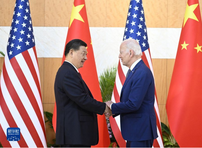 当地时间11月14日下午,国家主席习近平在印度尼西亚巴厘岛同美国总统拜登举行会晤。新华社记者 鞠鹏 摄