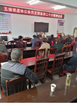 召开一次专题宣讲会。五接镇退休公务员支部召开学习贯彻党的二十大精神专题宣讲会议,传达学习党的二十大精神。宣讲员李斯健表示,“习近平总书记指出,中国共产党为什么能,中国特色社会主义为什么好,归根到底是马克思主义行,是中国化时代化的马克思主义行。以中国式现代化全面推进中华民族伟大复兴,就必须坚定马克思主义信仰,坚定中国特色社会主义道路自信。”