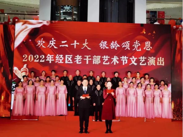 本次演出组织区老年大学、区老干部活动中心、经开区老干部合唱团、韩乐坊老干部艺术团等10余个团体16个节目参演,通过歌舞、小品、器乐、京剧等丰富多彩的表演形式,彰显了经开区老干部“老有所学、老有所为、老有所乐”的夕阳风采,广泛传递和凝聚了正能量,营造了欢庆盛会的浓厚氛围。