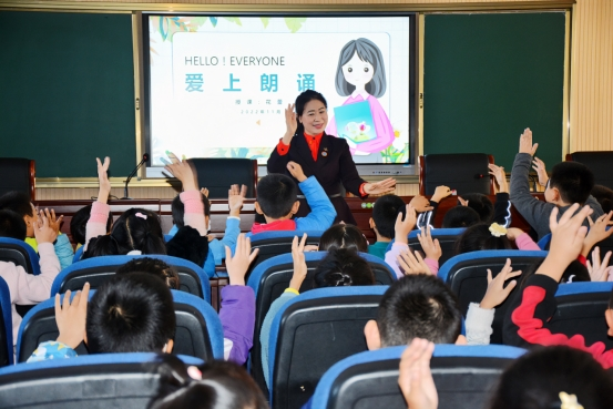 为促进普通话的推广,让小学生爱上朗诵,让躺着着文字活起来,11月18日,烟台牟平区“五老”宣讲团少儿礼仪讲师花蕾老师走进新建街小学,在多媒体教室为二年级全体学生献上了一堂生动有趣语言课堂。