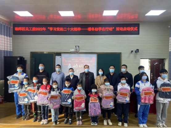 2022年11月24日上午,湖南省衡阳市珠晖区关工委在上托教育集团上托小学校区举行2022年“学习党的二十大精神----暖冬助学在行动”活动启动仪式。区关工委主任刘诗庆出席活动并讲话,区教育局党组书记、局长罗广慧主持。区委组织部、区老干部服务中心、区教育局、区属中小学相关领导以及部分困难学生代表参加活动。