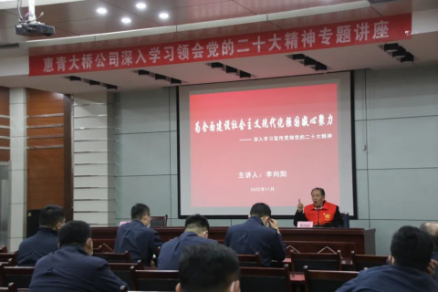 11月18日上午,滨州惠民县“五老”志愿者、党的二十大精神宣讲志愿员、省离退休干部党组织书记宣讲团宣讲员李向阳同志到惠青黄河大桥,走进机关为一线干部职工宣讲党的二十大精神。