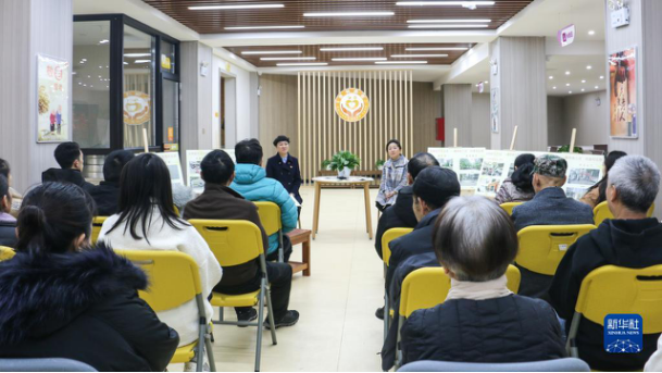 12月2日,宣讲人杜明英(后排左)和谌鸿萍(后排右)在贵州省贵阳市云岩区万江小区云泽养老服务站里向万江小区群众宣讲党的二十大精神。新华社发(赵倩倩 摄)