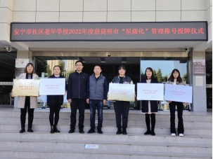 2022年按照昆明市委老干局《关于推进社区老年学校“星级化”管理的通知》,通过组织申报、实地查验、座谈调研和台账检查等方式上报五所社区老年学校,最终金方街道新村社区老年学校、禄脿社区老年学校、晓塘社区老年学校、始甸社区老年学校、万辉社区老年学校获昆明市规范化建设“星级化”社区老年学校称号。