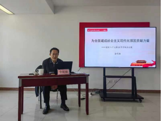 金延铭同志以《为全面建成社会主义现代化强国贡献力量》为题作辅导报告,围绕“一次具有里程碑意义的大会、一篇马克思主义的纲领性文献、一次光荣神圣的历史性使命任务”三个方面作重点阐述讲解。通过深入解读党的二十大精神,引导大家深刻理解并牢牢把握过去5年工作和新时代10年伟大变革的重大意义;牢牢把握新时代中国特色社会主义思想的世界观和方法论;牢牢把握以中国式现代化推进中华民族伟大复兴的使命任务;牢牢把握以伟大自我革命引领伟大社会革命的重要要求;牢牢把握团结奋斗的时代要求。