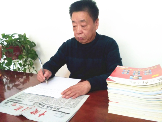 而誊写一篇千字文稿,需要端坐桌前一个格子一个格子地“爬”上一个多小时,累得手疼、腿麻、脖子不舒服。有段时间我接连写了十几篇稿子,竞引患颈椎病,头晕、失眠、脖子痛。而稿子发出后,由于邮路慢,稿子到编辑手里,还得手工改稿,稿子十天半月上不了报纸、广播,我只好在翻阅报刊、收听广播中焦急等待。因此,我时而无端地对妻子发脾气。妻子心疼地说,没想到写稿还这么繁琐,劳心受累、搭钱还致病,咱不写了,回家种地吧。可我眼看着祖国建设发展日新月异,蒸蒸日上,舍不得搁笔,硬是铁了心地坚持了下来,被媒体采用稿件一年比一年多,年年被评为全县模范通讯员一等奖。