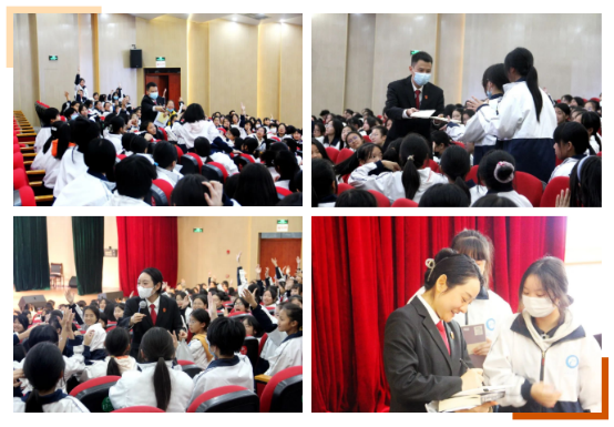 活动中,阳林法官围绕防治校园欺凌、预防毒品犯罪等内容,向学生们进行普法宣传,讲解了校园欺凌、毒品的类型和危害,阐述了受到侵害如何利用法律武器保护自己的合法权益。