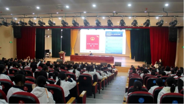 为增强未成年人法治意识,近日,湖南省衡阳市蒸湘法院少年法庭庭长阳林、刑事庭副庭长陈彬彬走进高新成章实验学校,为该校师生带去一堂生动的法治课。