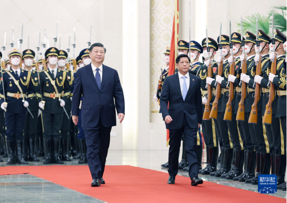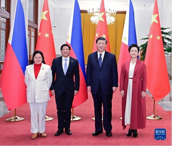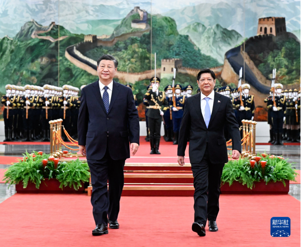 习近平欢迎马科斯就任菲律宾总统后首次访华。习近平指出,这是你首次正式访问东盟以外国家,你也是今年中方接待的首位外国领导人。这充分体现了中菲关系的密切程度,也说明双方在彼此外交格局中占有重要位置。中菲是一衣带水的近邻。在两国上千年交往史上,以诚相待、守望相助始终是中菲关系主流,也是两国人民共有的宝贵精神财富。48年前,你的父亲同中国老一辈领导人洞察时局、顺应大势,共同作出中菲建交的历史性决定。此后近半个世纪,无论国际风云和菲律宾国内政局如何变化,你和你的家族一本初衷,矢志推动中菲友好,这份情谊弥足珍贵。希望你这次访华不仅是一次“怀旧之旅”,更是一次“开创之旅”。中方始终把菲律宾放在周边外交优先方向,坚持从战略和全局高度看待中菲关系。我愿同你保持经常性战略沟通,全面规划双边关系下步发展,做互帮互助的好邻居、相知相近的好亲戚、合作共赢的好伙伴,为两国人民带来更多福祉,为地区和平稳定贡献更多正能量。
