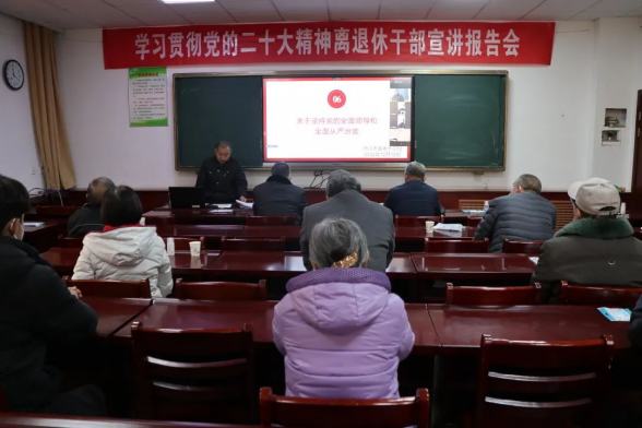 近日,德州市离退休干部学习贯彻党的二十大精神宣讲报告会在德州老年大学举行,通过线下+视频会议的形式,邀请德州市离退休干部党组织书记宣讲团成员刘爱国为德州市离退休干部和部分青年干部党员作专题报告。