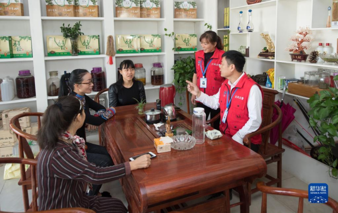 浙江省诸暨市红枫义警工作人员(右一、右二)在枫桥镇调解群众纠纷(2018年10月19日摄)。新华社记者 翁忻旸 摄