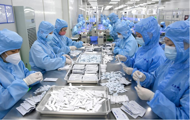 西安一家医疗器械企业的工作人员在生产抗原检测试剂(2023年1月4日摄)。 新华社记者 刘潇 摄
