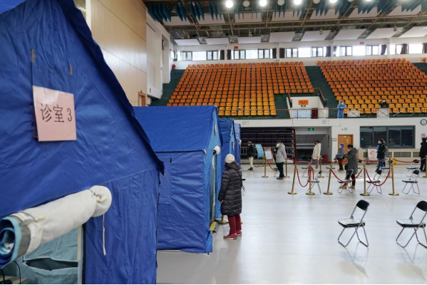 这是2022年12月24日拍摄的北京市西城区广安体育馆简易发热门诊。新华社记者 张晨霖 摄